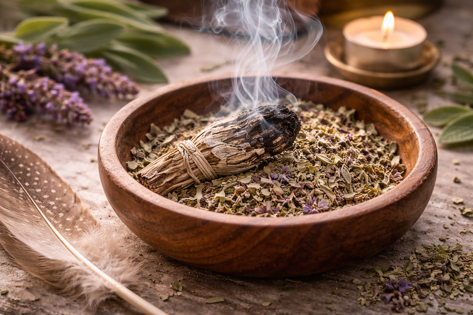 Salvie brukes i enkelte tradisjoner til symbolsk renselse av rom. Tørkede bunter tennes og får gløde slik at røyken sprer seg gjennom rommet. For mange representerer dette en form for energimessig opprydding, enten etter konflikt, ved flytting eller når stemningen føles tung og stillestående. Det er handlingen i seg selv, det å bevege seg gjennom rommet med intensjon, som gir betydning.